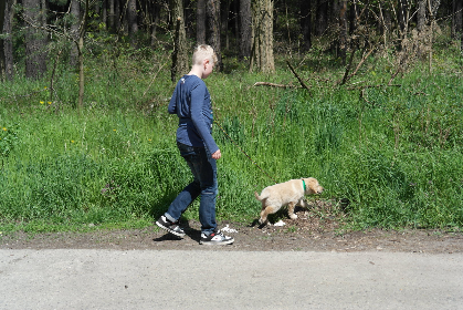 Yannis geht das erstemal mit Sunny an der Leine. Rast auf dem Weg von Cottbus nach Gallschütz.