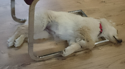 Obwohl ich so schöne Bettchen bekommen habe, schläft es sich auf dem blanken Fußboden doch am besten.